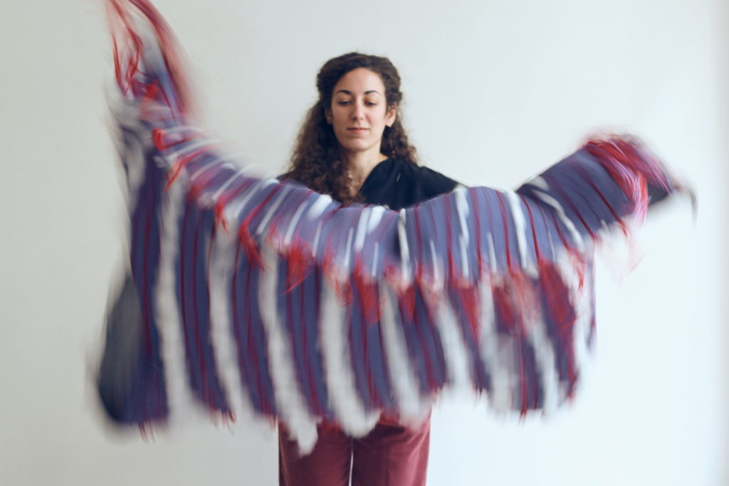 The autumn of 2018, Alexandra participated in the exhibition “The Countless Aspects of Beauty: Bringing to life Aegean Late Bronze Age Costume” that was presented at the National Archaeological Museum of Athens. Archaeologist Diana Wardle who curated the exhibition, recreates costumes inspired by antiquity, and in particular Minoan Crete, Thira and Mycenaean Greece. The designer collaborated with Wardle to recreate a costume from a Mycenae 13th-century-B.C. wall painting. After studying different materials and construction methods, Alexandra wove the fabric of the cloak from the “Room with the Fresco” using wool fibers.