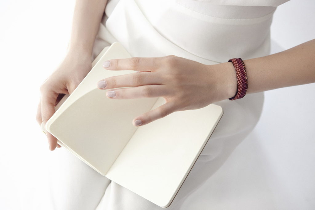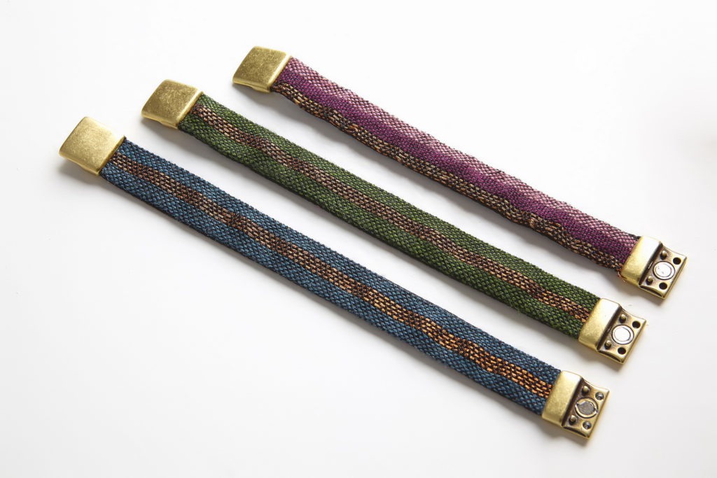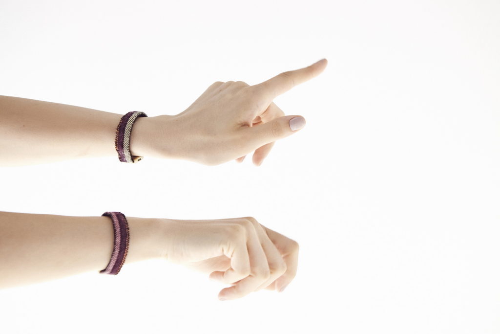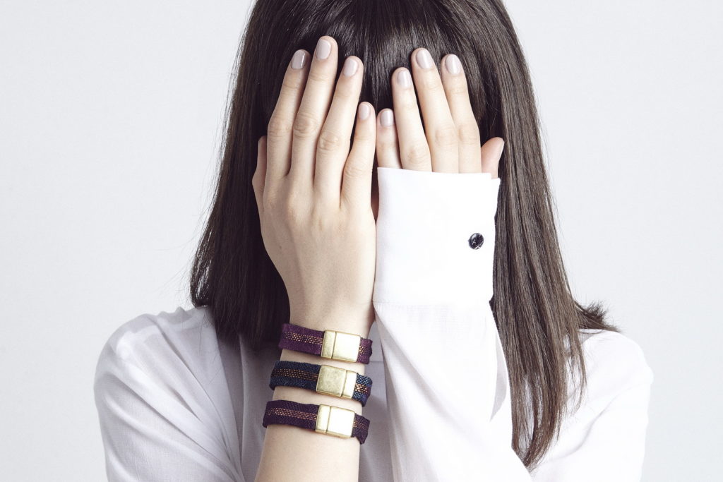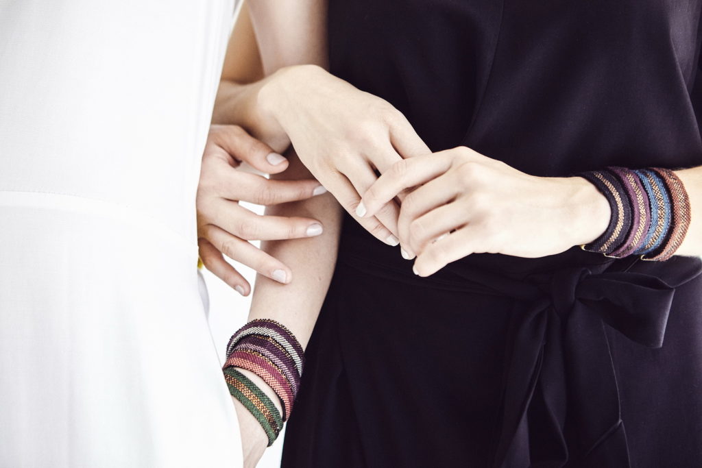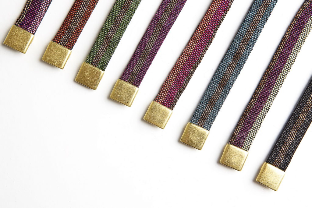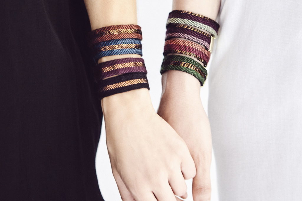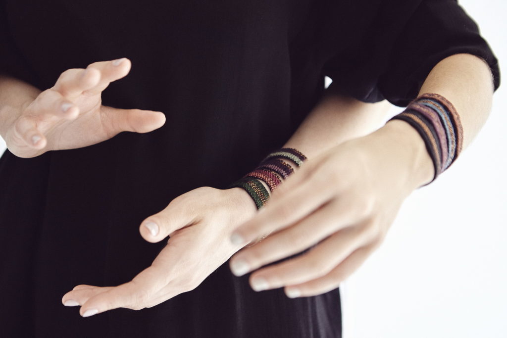 The limited-edition series of IDRIA N1 adornments are hand-woven bracelets that come in eight different colours and are inspired by ancient Greek patterns found on hydria N1 at the Acropolis museum. These adornments are now out of stock but can be made to order.