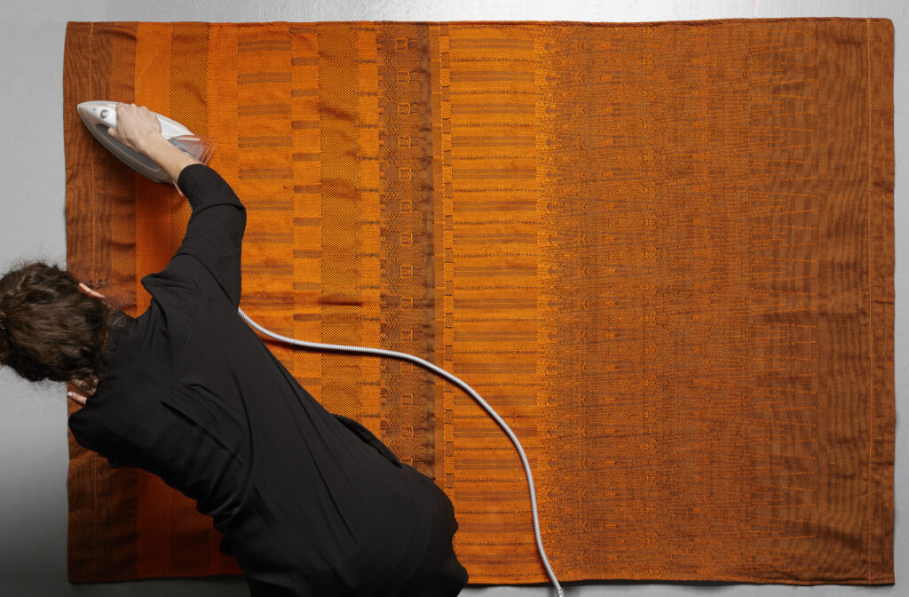 July 2024. Androidus Project invited me to Anogeia, a mountainous village in Crete, to create a new textile inspired by the area’s traditional woven fabrics. I dived into the local traditions, researched their customs and spent time with locals including Ermioni, a well known weaver in the region. The warmth and resolve of Anogeia and its people became my weaving narrative, inspiring the creation of MANTILES, which in Greek means traditional shawl. MANTILES is a woven fabric that embraces you like a warm hug, the feeling you get when you connect to Anogeias’s history and its people. A hug that gives you courage to keep moving forward despite life’s hurdles and losses.