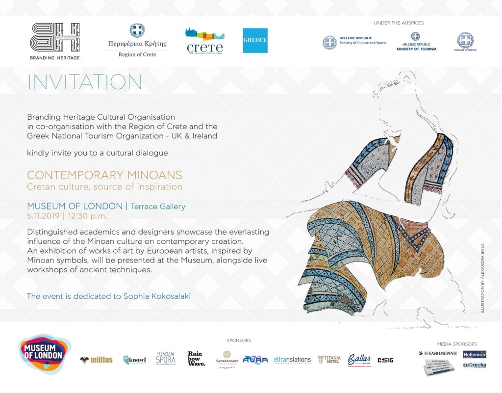 Branding Heritage Cultural Organisation, the Region of Crete and the Greek National Tourism Organisation – UK & Ireland co-organised a cultural dialogue about Minoan civilization at the Museum of London the 29th of November 2019. Alexandra was part of the “Contemporary Minoans: Cretan culture, source of inspiration” event. She exhibited a handwoven art piece inspired by the Minoan civilization, created exclusively for Branding Heritage.
