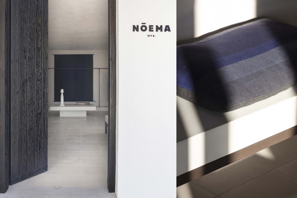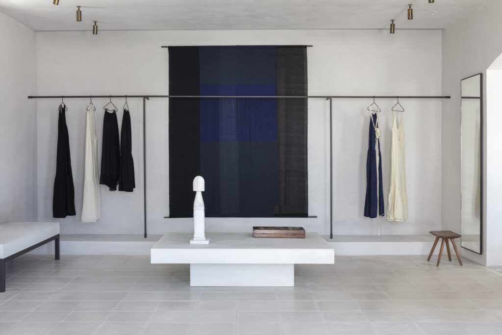 The Nōema Store is located in the heart of Mykonos. Following the conceptual direction of Prao Greece and in collaboartion with StudioPale, in 2021 the designer created a handwoven wall hanging as well as cushions. Recycled cotton and cotton yarns have been used.