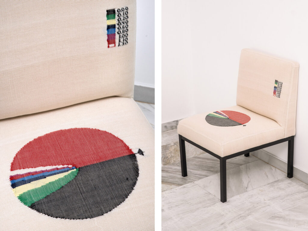 Creative minds were united for this complete makeover of an old occasional chair, for Sermaidis Press headquarters. Stephan Muller behind the concept. Giannis Gousdovas behind the bespoke upholstered cushion work & repair. Alexandra Bissa behind the handwoven fabric. Yannis Drakoulidis behind the camera.
